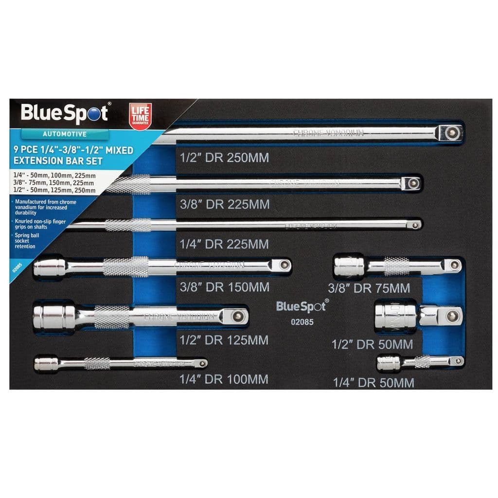 Blue Spot Tools 9pc 1/4"-3/8"-1/2" Mixed Extension Bar Set